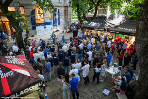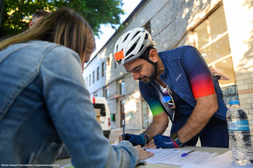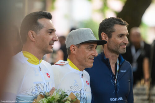 Οι νικητές σε πανηγυρικό κλίμα ανέβηκαν στο βάθρο και φόρεσαν το συλλεκτικό λευκό Trikot του αγώνα, υπογεγραμμένο από τον θρύλο της ποδηλασίας Fabian Cancellara!